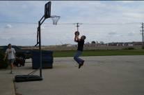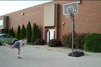 In the early days when our house rules were just starting to emerge, the shot qualifiers were pretty simple. For example, a player might call "no backboard" to specify that the shot must not merely go through the hoop, but must do so without touching the backboard at any time. The slightly less hostile variant is "no backboard first", which indicates that the ball can touch the backboard but only if it touches the rim first. Other very simple calls include "jump" (must jump while shooting), "no jump" (feet must not leave the ground), "must draw rim" (ball must touch the rim at some point).