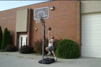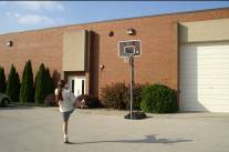 Shoot while standing just below the hoop with your heels touching the wheels on the base of the apparatus.