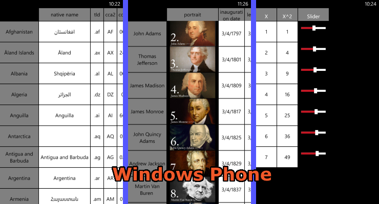 - Automatic updates if an ObservableCollection is used for rows and columns