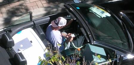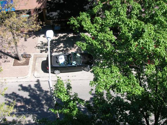 For about a half hour yesterday, productivity at SourceGear/Teamprise World Headquarters came to a grinding halt. The weather has been fantastic, so we've been opening our windows. Looking down from our fourth floor view, somebody noticed a convertible parked at the coffee shop across the street: