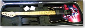 When we were doing Guitar Hero in our trade show booth, we gave away actual custom guitars with The Evil Mastermind graphics. |